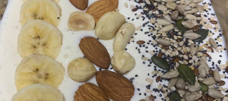 La combinación de frutos secos, semillas, lácteo y fruta fresca aportará una gran cantidad de nutrientes indispensables para el buen funcionamiento muscular y neuronal.