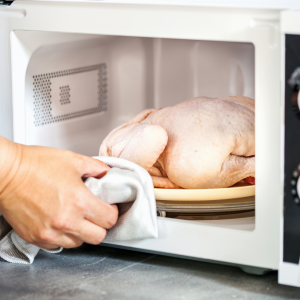 Aunque sea lo más rápido y sencillo, el microondas no es la mejor opción para descongelar nuestros alimentos homogéneamente. Aunque la opción menos recomendable sin duda es  descongelar a temperatura ambiente ya que a temperaturas entre 5 y 65ºC los microorganismos pueden reproducirse con mayor rapidez.